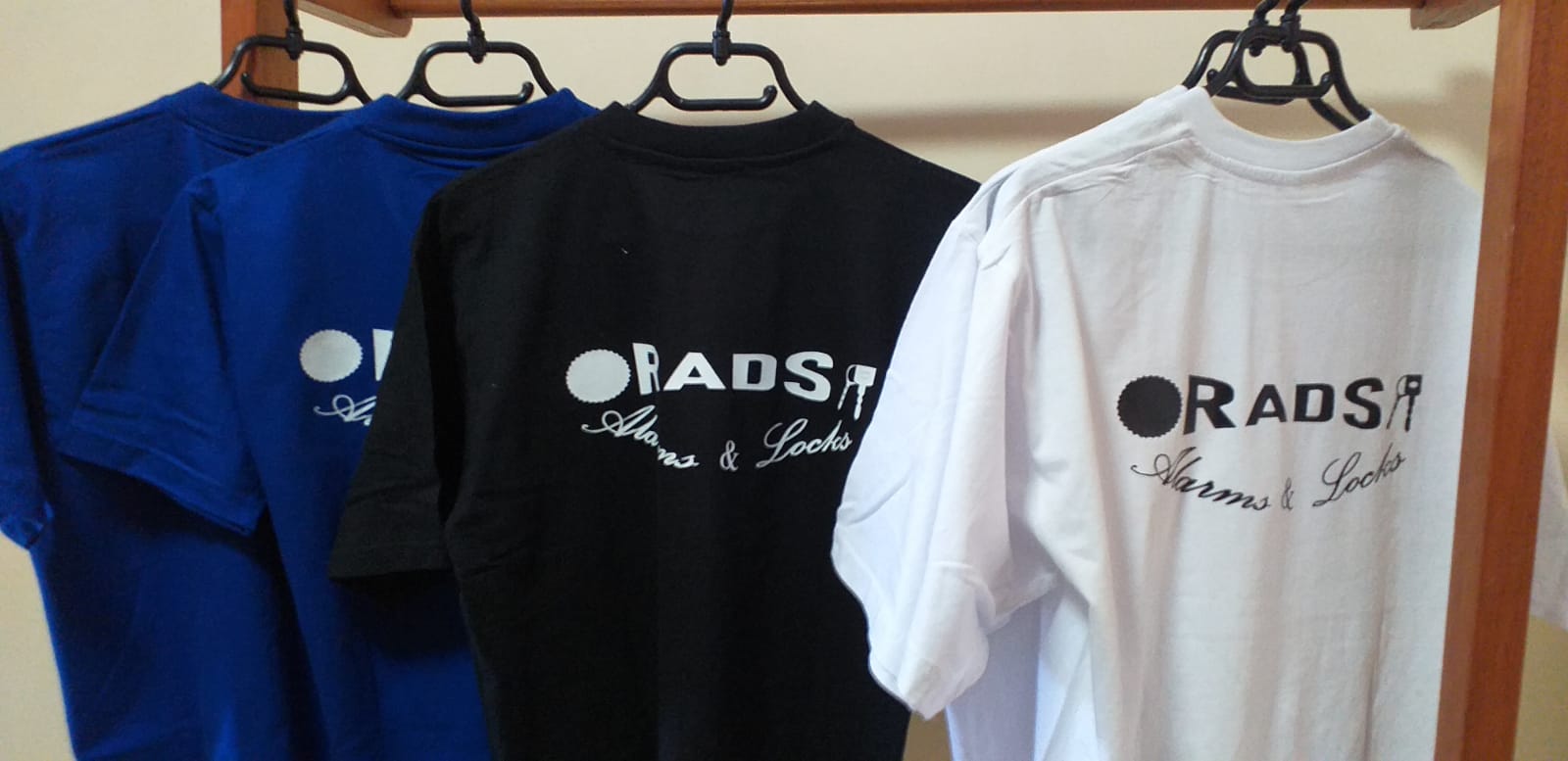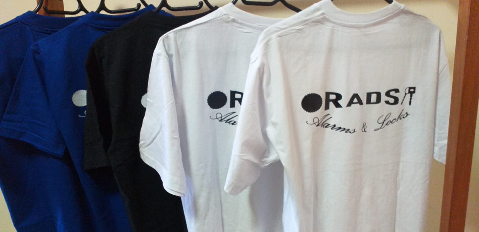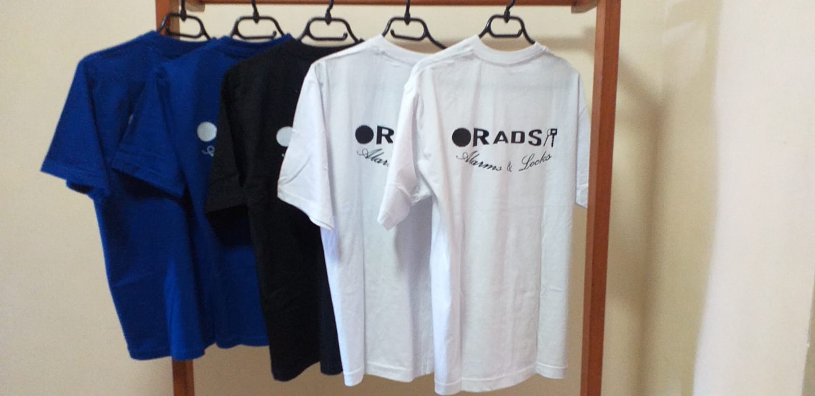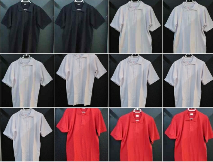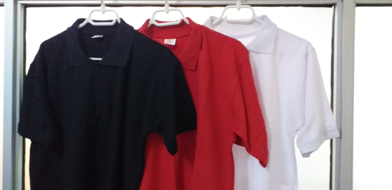 - Polo shirts in white, red, blue and black